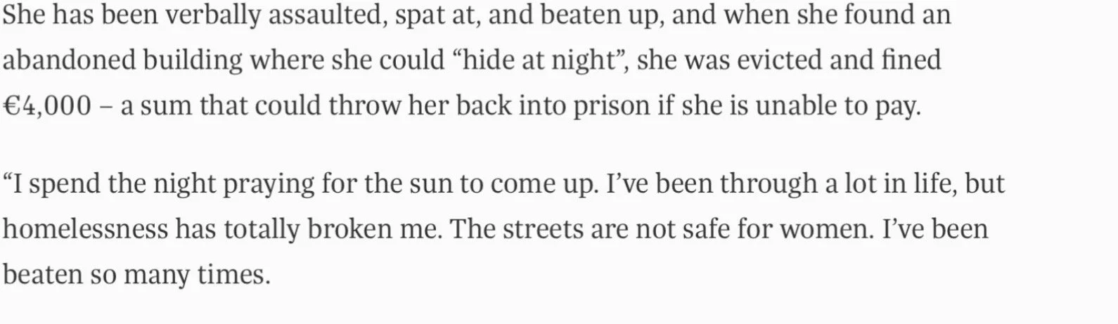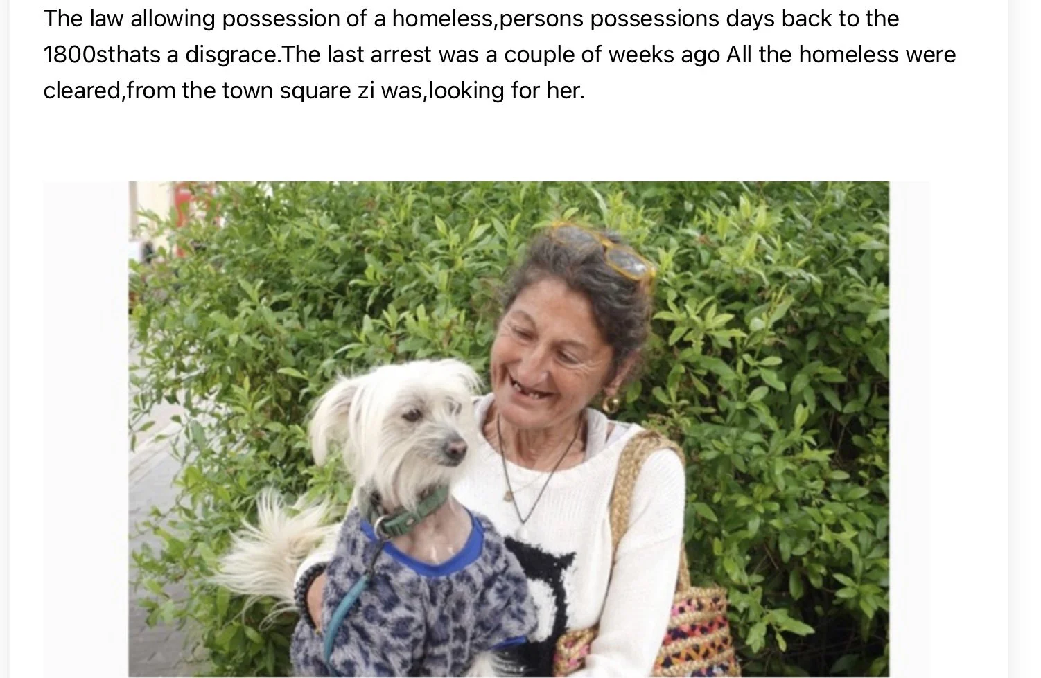 She could not go to a homeless shelter because she had a dog. The council took away her warm clothes and bedding. She was so cold that she lost a finger and a toe.
