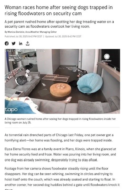 A Russian earthquake caused tsunamis in Japan. Torrential rain caused flooding in Chicago, pets had to be rescued swimming around inside their homes. An owner caught endangered pets swimming around. Texas also had floods.