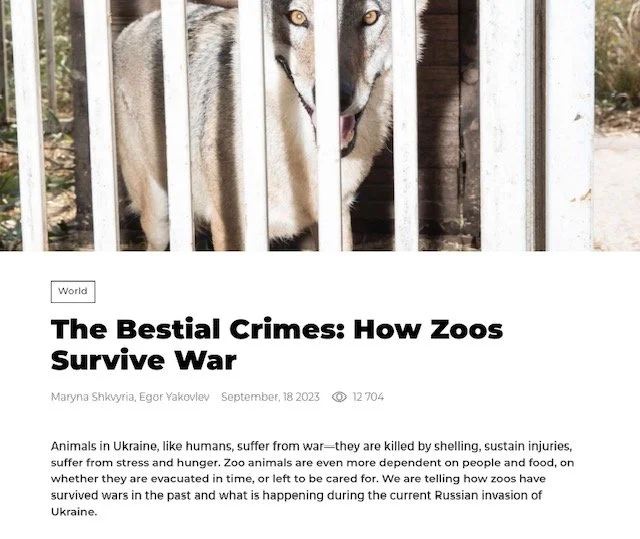 Another point is zoos in war zones. Many caged animals starve or are left wandering the streets, their carers having fled the bombs of destruction.